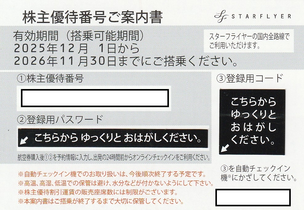 | SFJ スターフライヤー株主優待券(最新券) | SFJ スターフライヤー株主優待券 |